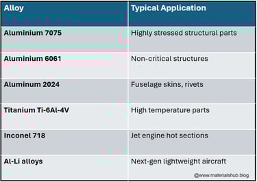These reasons make aluminium 7075 alloy better for fuselage or wing structures at lower temperatures. Other parts exposed to engine-adjacent temperatures require other different materials like titanium alloys or specialized aerospace steels.